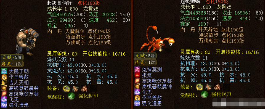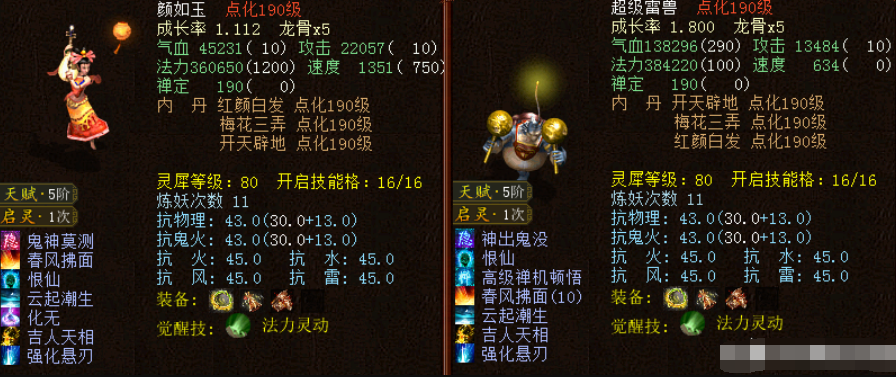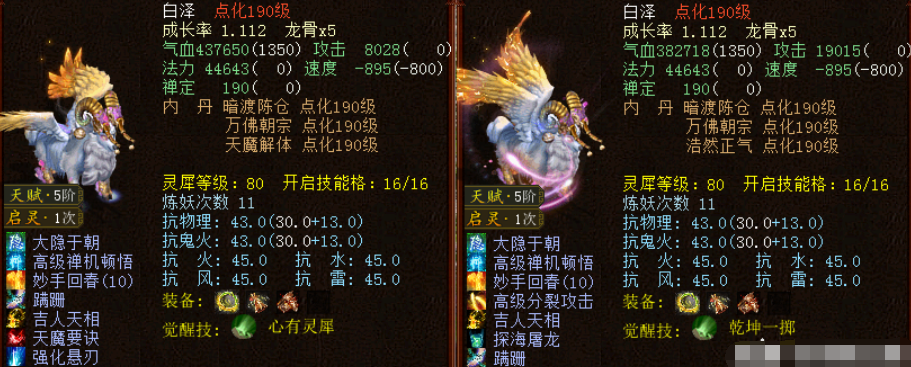 感谢来自漠颜无情的分享。 今天跟大家详细的说下召唤兽的技能以及运用,因为今年无差别的召唤兽和终极技能采用了积分制,这就让大家能很好地体验这些高端物资,下面先用神兽做参考展开说说! 神兽哥俩好与狮蝎 这样的宝宝适合常规血队站桩用,例如火力以及女人,这种血宝宝可以保证让自己的不会那么轻易的灭门,从而可以持续的输出,还有就是这种超级类型的神兽,只需要5点积分,可以领取4只哦,技能这边前面几个就不介绍了,这里说下物以类聚和去妄存真,物以类聚:召唤兽立场后,支援列表第一位与召唤兽造型相同的,则提升闪现几率,很大程度的增加了闪现几率,去妄存真:还原自己与另一个单位的五行,有几率还原所有单位的五行,这就让队伍不受五行限制,很大的提升了己方的伤害以及承受伤害,召唤兽装备技能因为没有忽如一夜,所以选择背向。 神兽五叶和剑精灵 这种的适合首发舍生,前者适合血队可以舍生对面的男人或者男鬼,可以让其两回合内只能物理攻击,后者适合敏队,可以在火力都输出后,针对男鬼舍生。 神兽画中仙与大白羊 这种的适合敏队首发,前者提克扛灵宝伤害,后者可以反拉己方敏魔,保证高敏单位站立。 画中仙&剑精灵 这种召唤兽适合血队补给,因为无差别里没有年兽,所以这是最高敏序的召唤兽,被动的适合可以叫出来给己方补给。(有的技能可以选择小终极,我是为了好看) 大力神兽 这种就没有啥好说的,俗话说大力出奇迹,尤其是化无浪淘沙现在也都是天价了,我们也可以在无差别里好好体验一下。 这种法秒的召唤兽,相信大家也都在比武大会或者天梯里面看到过,威力就不用多说了吧?秒就完事! 神兽白泽 当然最后一回合的套路召唤兽血队肯定是要备一只的,不管是高分砍,还是天魔,都是不错的选择。 最后再给大家说下神兽积分,神兽积分一共是20积分,其中画中仙和白泽是10分,五常神兽+六艺神兽是7分,其他的超级类型神兽是5分,终极技能也是20分,其中化无是10分,绝境逢生,明察秋毫,子虚乌有,以牙还牙,作鸟兽散,子虚乌有,赫赫神威是5分,当头棒喝,将死,双管齐下,春回大地是3分,至于怎么选择搭配,大家可以根据队伍配合着来! [编辑:loikp]