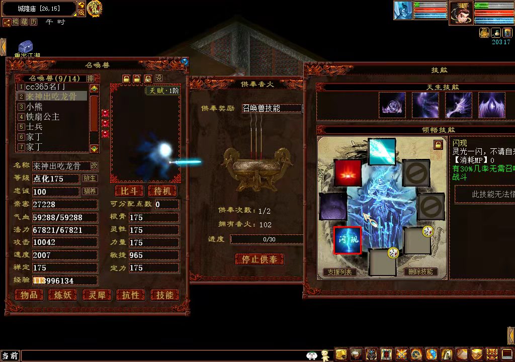 玩家攒够了香火给召唤兽求技能,五个号能烧十个技能,求表哥给几率个有用的吧! 冲冲虫?经典宝宝啊