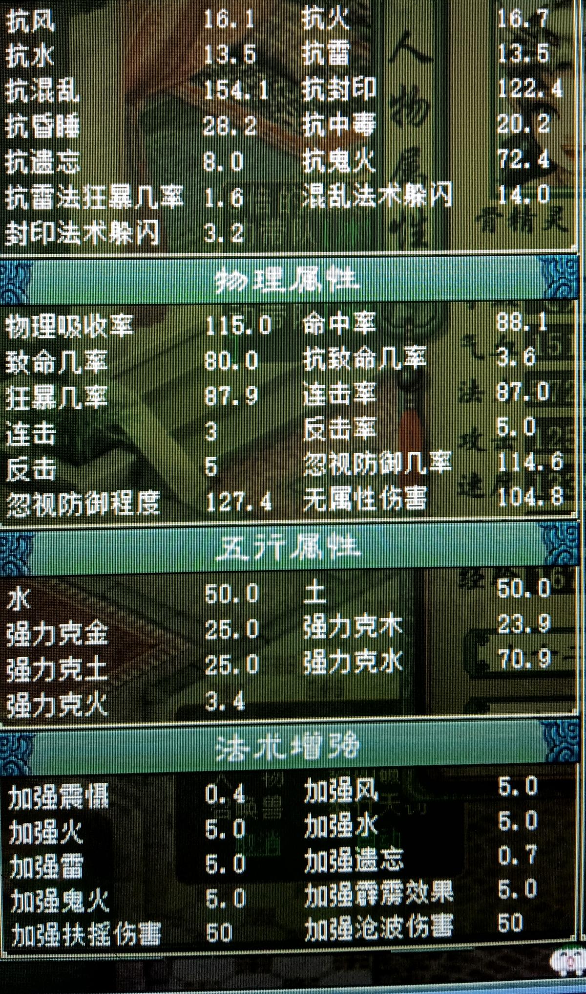 日常12万的攻击力,1350的速度,算是一个中敏大力。忽视防御几率114.6、忽视防御程度127.4,致命几率80、狂暴几率87.9、连击率87、命中率88.1,克水70.9,无属性伤害104.8,大家觉得这大力的属性怎么样? 抗性属性面板