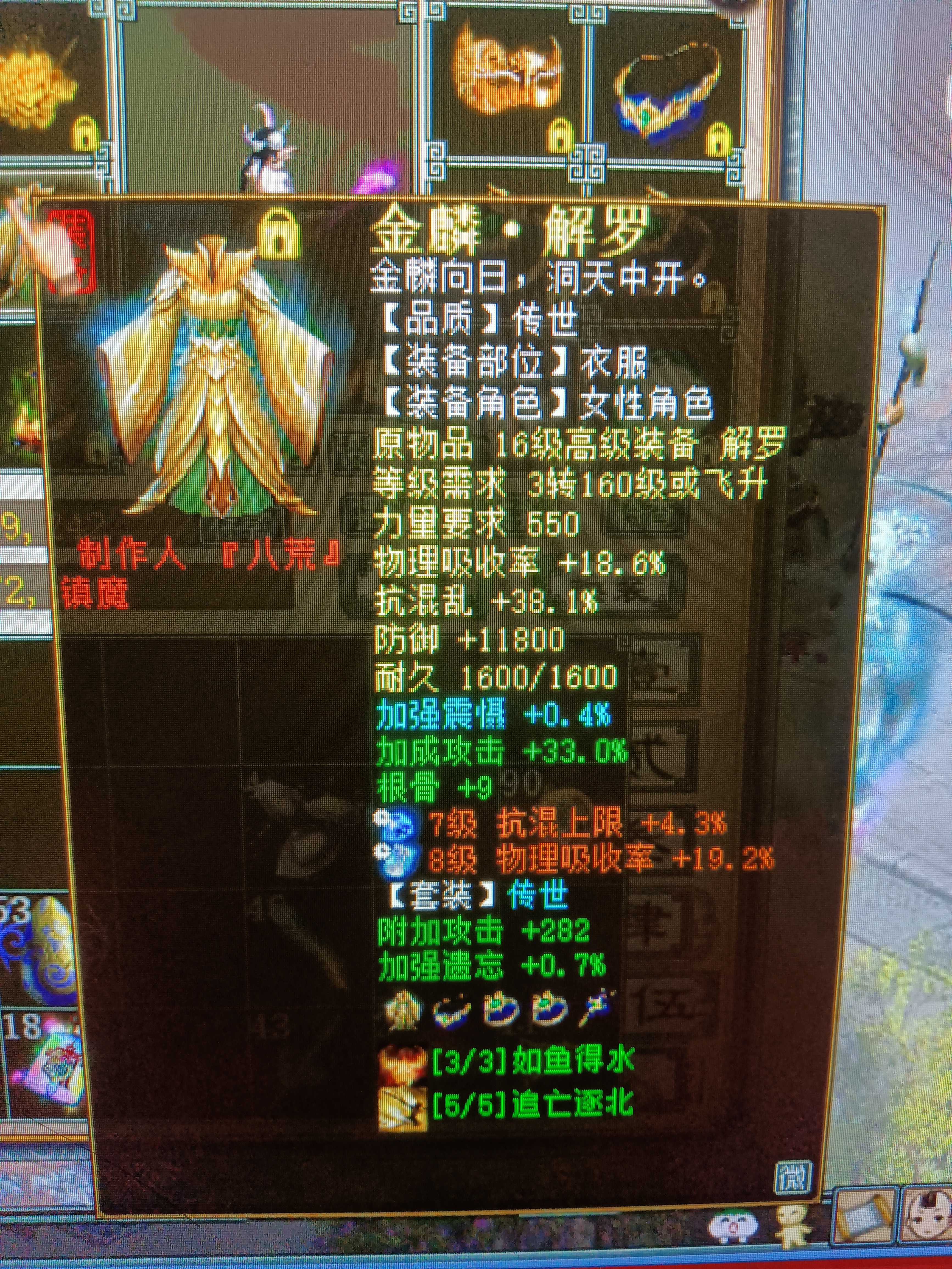 炼化加成攻击33%的高装衣服,套装加282攻击