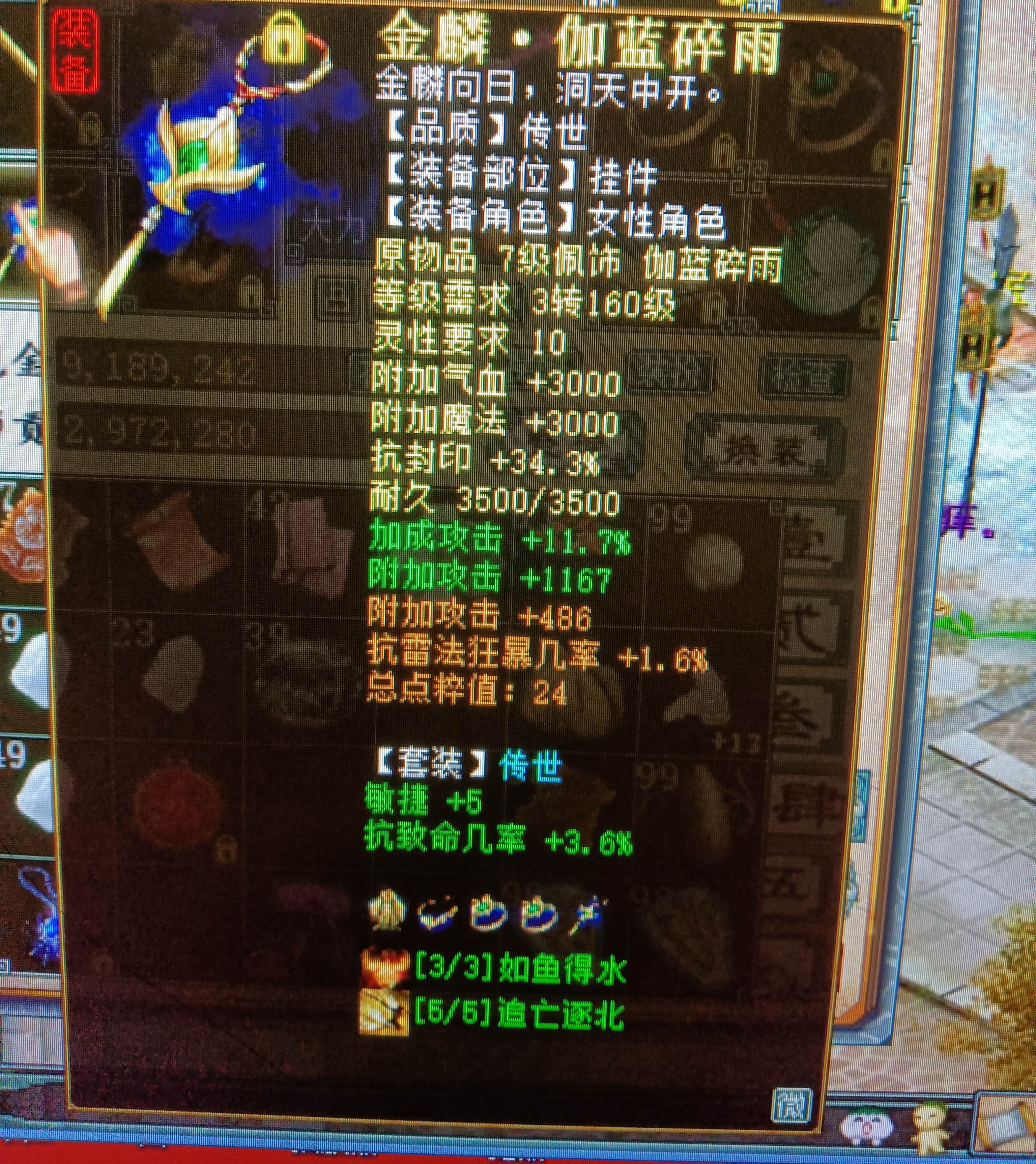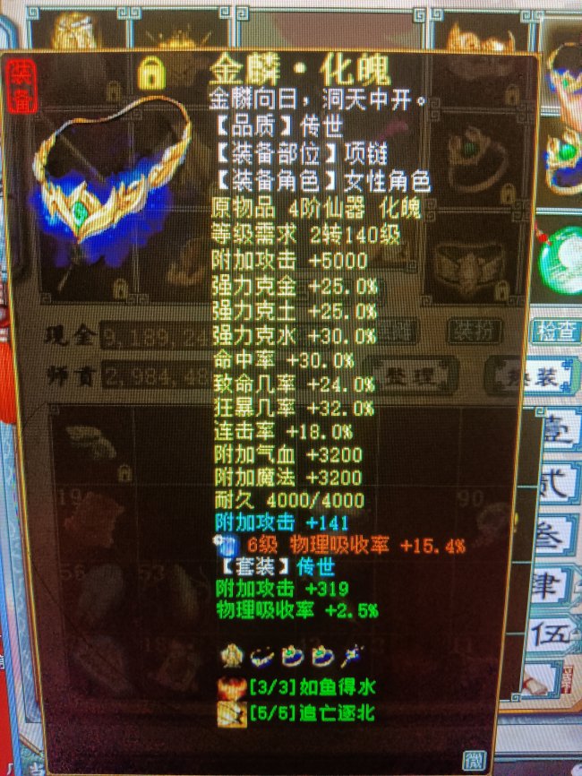 4阶仙器项链,蓝字和套装各加攻击141和319