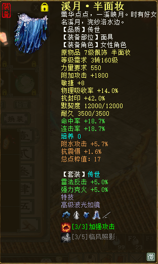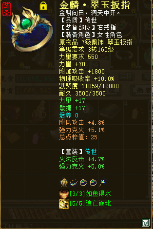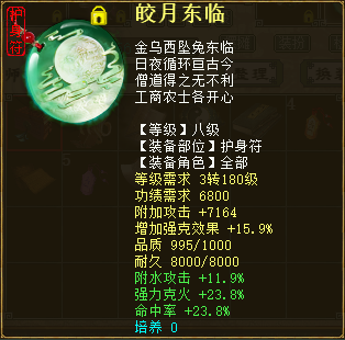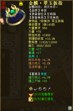 以上就是全套的日常任务装备,而了尘°并非只专注于日常任务,在PK上也有着一定的研究。可能有玩家说克火PK不行,但这并不妨碍克火玩家玩PK,不是吗? PK属性