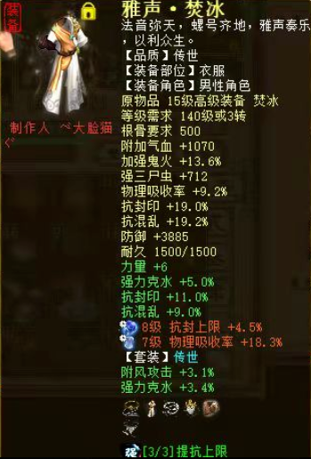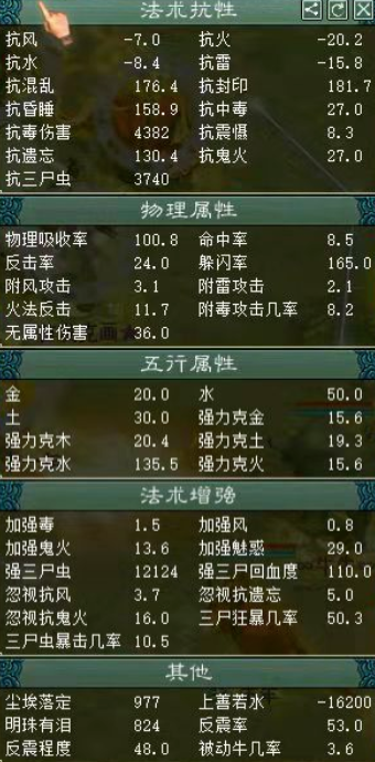 几经辛苦,这位兄弟终于将自己的回血鬼打造好了,无论是三尸数据还是各方面的抗性都趋于满意,展示给大家看看成果吧! |