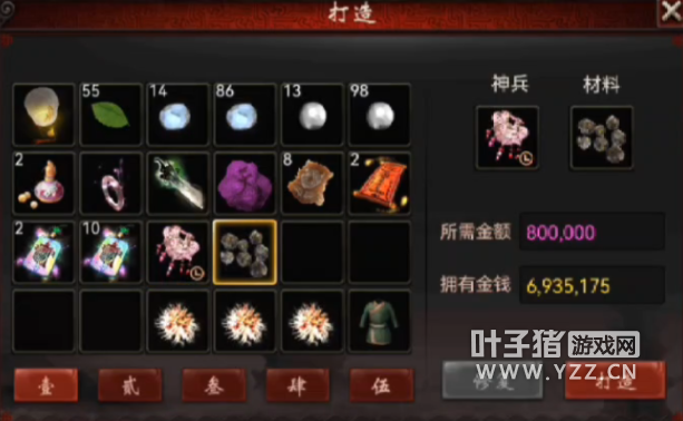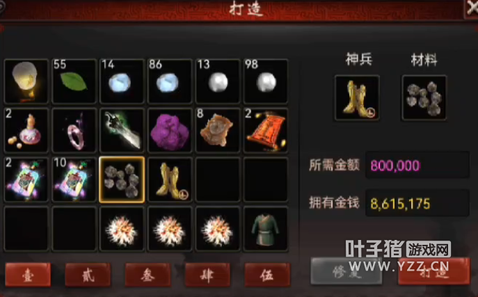 这兄弟带着三件四级神兵,准备找何大雷挑战一下几率,三件还都是不错的属性!话不多说,直接上图: