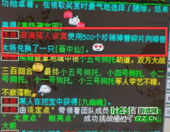 今天小编发现一件很有意思的事,一位玩家攒够了500个珍稀神兽碎片,希望能换出一只年兽,不料朋友说...感觉这波必出画中仙? 结果到底如何呢?一起来看看吧! 这位朋友果然是神嘴啊...你身边有没有这样的“最佳损友”? [编辑:wifjc]