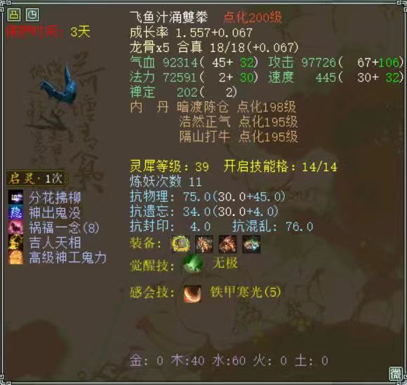 玩家晒出好几只老版召唤兽,看属性和带的觉醒,这几只宝宝绝对不会“压箱底”,尤其是名字,展示型非常强! 而且...据说只有老玩家能看懂含义...不说了,兄弟们自己看吧! 变色飞鱼