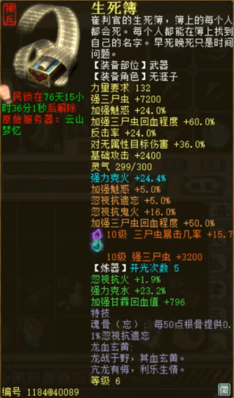 一生所爱服务器中,一位男鬼大神玩家秀出了自己的装备和灵宝,据说这些物资都是他多年心血所收集,并且亲手打造出了最为适用的属性。 下面就来一一欣赏这些“收藏级”的鬼族珍品,特别是一众灵宝的数据,看起来就非常好用! 这还只是其中一部分装备物资,看来想要玩好每一个种族都非易事,也期待看到这位大佬展示实战效果的画面! [编辑:iekce]