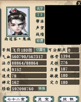 一玩家展示出自己的三世女魔转任务男鬼,其抗性数据非常不错,而且全身装备无神兵仙器,下面就一起来欣赏吧!