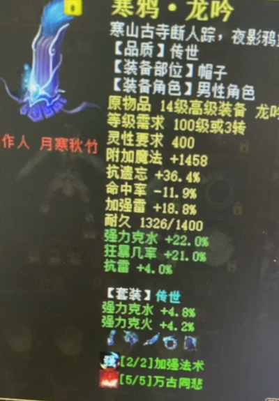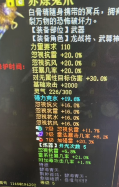 一位克水雷法炮,将武器炼出忽视雷5、雷系狂暴几率21的属性来,于是找转鬼试试伤害,顺便再展示一下装备!