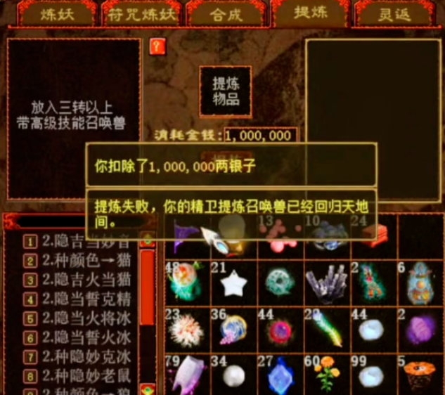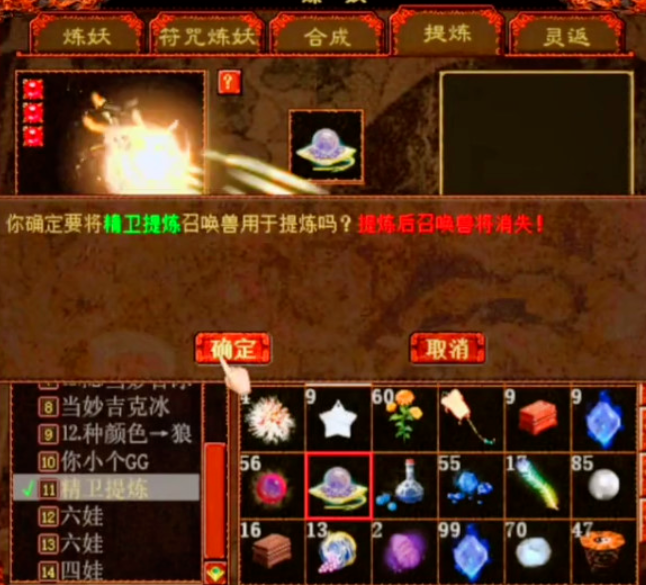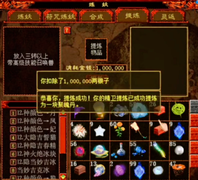 坐拥五只精卫宝宝的玩家,今天准备将它们一口气全部提炼掉,希望成功率能有一半就满足了!