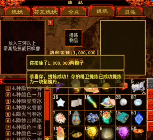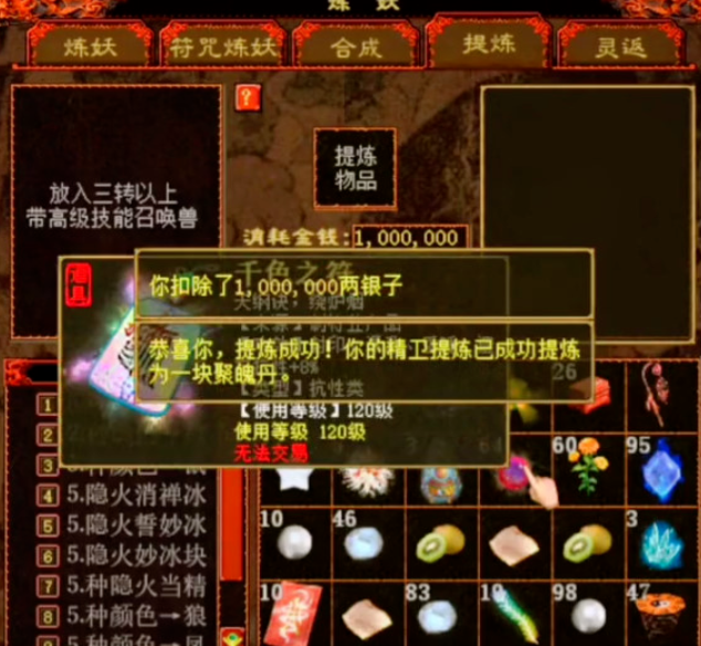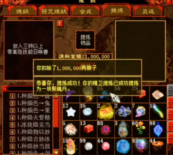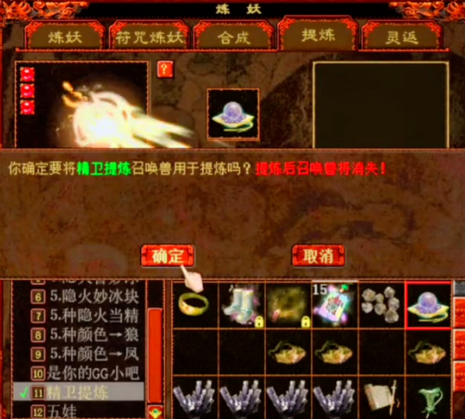 坐拥五只精卫宝宝的玩家,今天准备将它们一口气全部提炼掉,希望成功率能有一半就满足了!