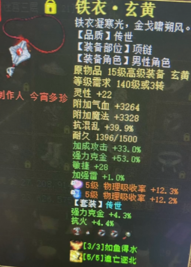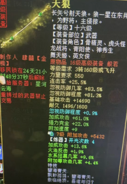 今天为大家展示一位铁衣大力魔,手持十六级天狼武器,全身无仙器无神兵,一回合砍转鬼更是不在话下,来看看他是如何搭配的! |