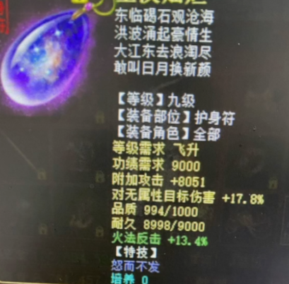 飞升200级的六破大力魔现身,攻击12万+,无属性伤害也高达117.2,这到底是怎么做到的?下面就来看看他的搭配细节吧! 武器、护身、星符上的无属性,造就了这一非常亮眼的数据,再加上其他各类装备的物理属性,相信他一定能砍出震惊全场的伤害! [编辑:cikehd]