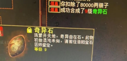 想要得到9级奇异石该怎么办?首先你需要有两块八级宝石,接下来就找到匠师,把一切交给天意就好啦! 不错不错,一颗九级奇异石到手,不知能鉴定出多少价值的呢? [编辑:apcke]