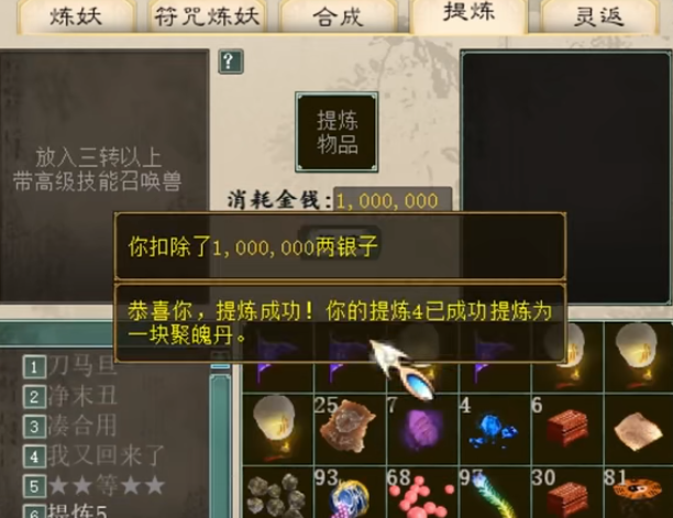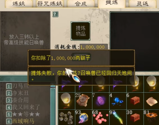 大话西游2一次提炼七只宝宝!目标成功一半就满足啦