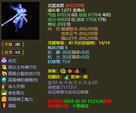 老规矩,咱们还是先从基本情况看起,欣赏下这位策马江湖服务器的男魔高手: