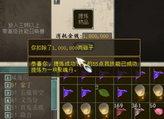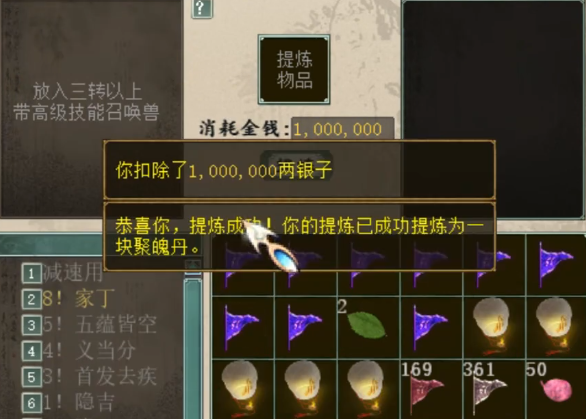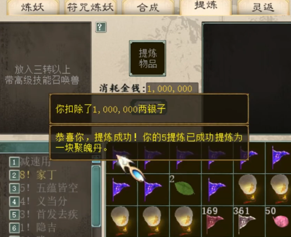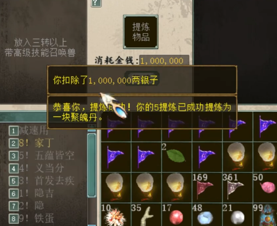 七只大话西游2召唤兽同时提炼,大佬们为了给宝宝开格子也是够拼的,收这么多三转高技能召唤兽也不容易吧? 但据说这波成功率相当之高,主人非常满意,一起来看! 太牛了,五颗聚魄丹诞生!这成功率太高了吧? [编辑:qlcoej]