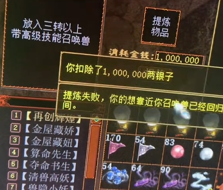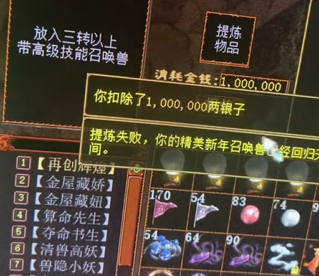 一位大话西游2玩家准备一次提炼十只召唤兽,看看他的成功率能有多少,希望过半就满足了!