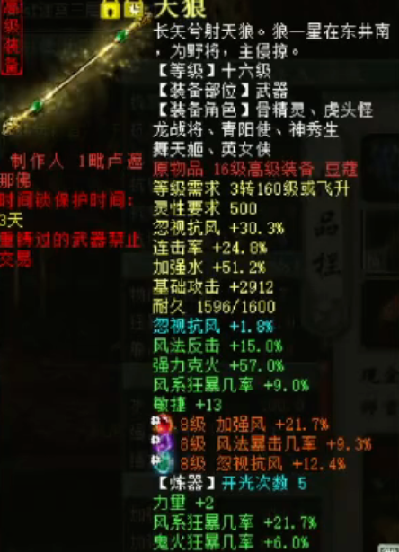 手持十六级天狼武器,克火高达400之多,这枚大话西游2风法炮的细节非常到位,伤害也是极为亮眼,一起来欣赏吧! |