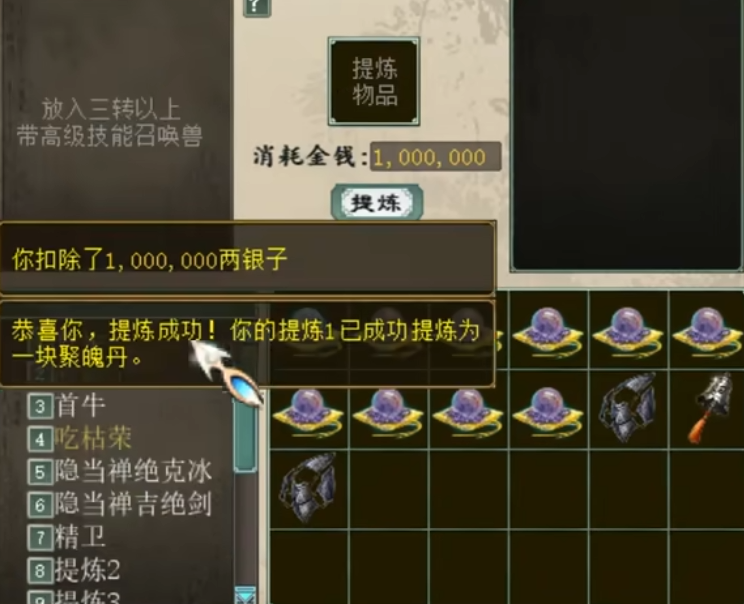 大话西游2又见提炼十只召唤兽!这次成功率稳稳过半
