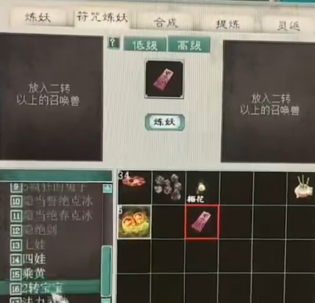 大话西游2高级符咒炼妖!相信见过这一流程的兄弟们不多吧?毕竟想要杀出这枚高级符咒,不仅需要持之以恒,还要很强大的运气才行! 看,将两只二转以上的召唤兽和一张高级符咒放在一起,接下来只需点击炼妖,就可以期待到底会出哪只神兽了! 还算不错吧,虽然没有换出大浪,但颜如玉也相当给力了,毕竟咱这是换出来的嘛! [编辑:438jhue]