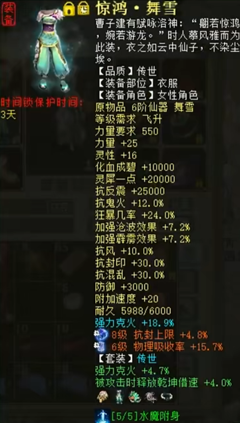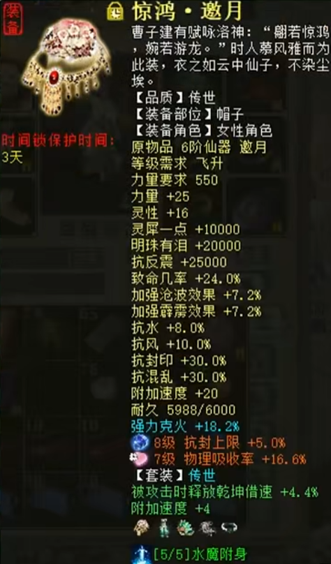 今天给大家展示一位大话西游2女龙,满身都是六阶仙器和六级神兵,看完只想大喊66666! 这是不管属性超不超标,就是要顶满的节奏吗?下面就来一边欣赏她的搭配,一边看看最终的伤害到底如何吧! 太牛了!如果非说哪里有不完美的,可能就是...藕丝缺个高招? [编辑:394hfjq]