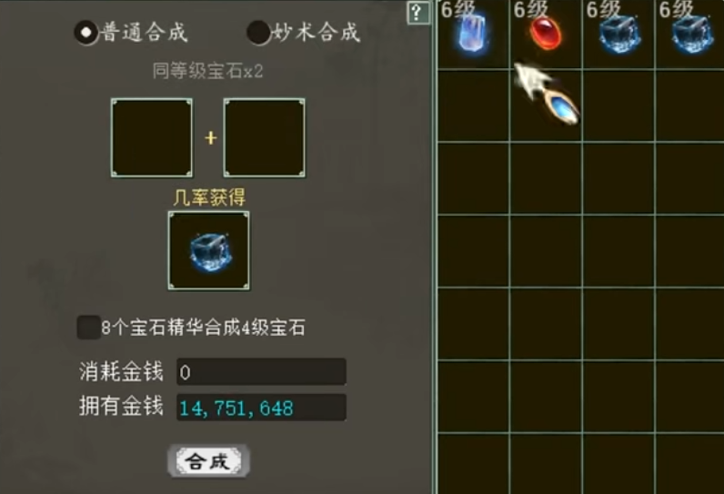 今天这位兄弟花了很大功夫,攒了一堆新宝石准备合成,其中4级、5级、6级都有,而最终的目标是冲上一颗7级就行,来看看他能达成心愿吗? |