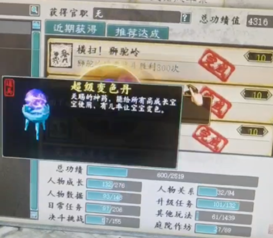 历尽辛苦,五开玩家终于完成了大话西游2横扫功绩,接下来就是点开小宝箱的时候啦,妃子、冰块变色丹什么的,都快快到碗里来吧! 除了剑精灵丹之外,居然还有一颗超级变色丹,这波辛苦总算没有白费,恭喜老铁! [编辑:287jha]