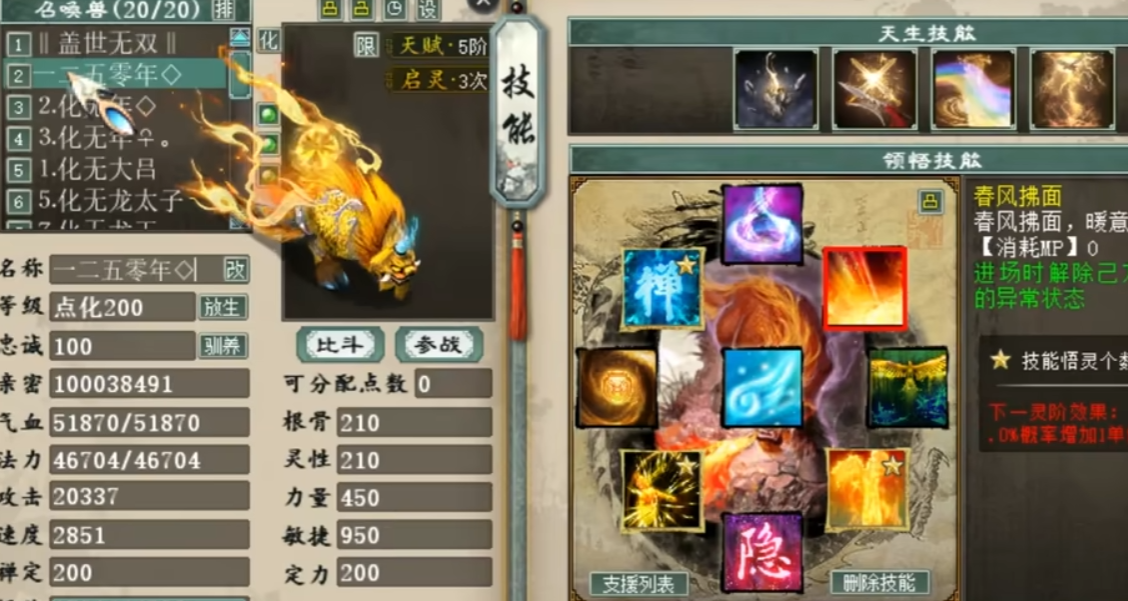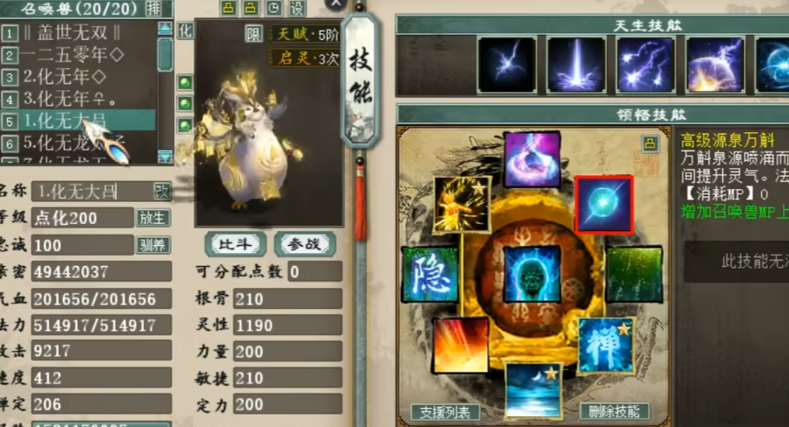 这是...盖总队伍的宝宝?今天有玩家秀出了整整十八只“王炸级”召唤兽,每只都带有化无技能,其中不乏年兽、双终极的存在,兄弟们速来观摩! |