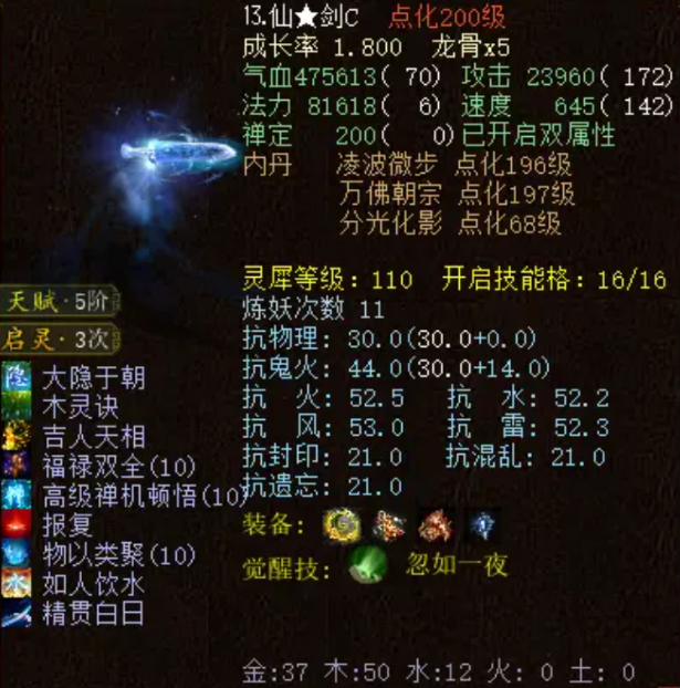 大话西游2六只哥俩好加七只剑精灵!他的收藏太给力 一位大仙前来展示他的十三只神兽,这些宝宝不仅全部满灵犀,并且都带有忽如一夜觉醒技,其中更有终极技能的存在,下面一起来欣赏吧!