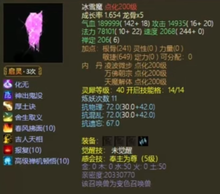 藏宝阁惊现售价268万的逆天魔!亮点是9化4以牙、神兽6只、四个极品孩子,而在亮点没有描述的部分,还有很多值得一看的细节,兄弟们一起来欣赏吧! 售价268万的逆天魔