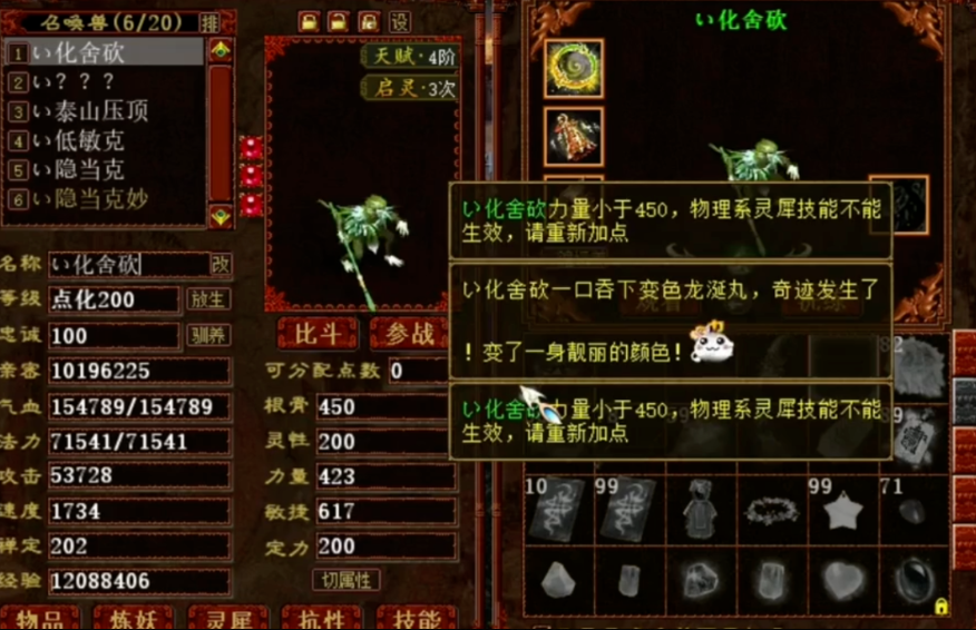 这位兄弟拥有一只不错的大话西游2猴毛,而且他非常想将这家伙变成金色的,于是今日准备好了一批变色龙涎丸,看看能不能成功获得一只“金丝猴”! |
