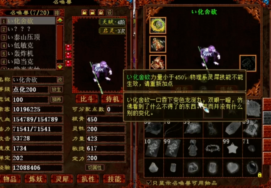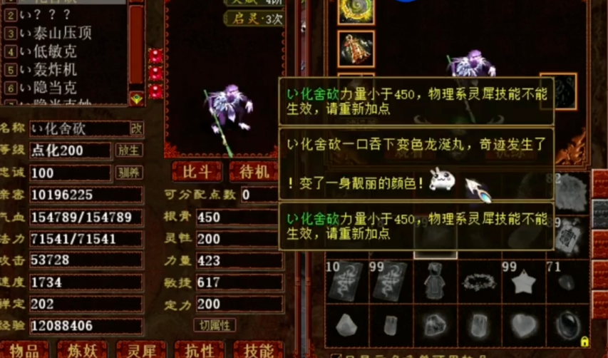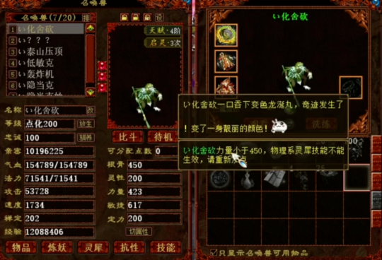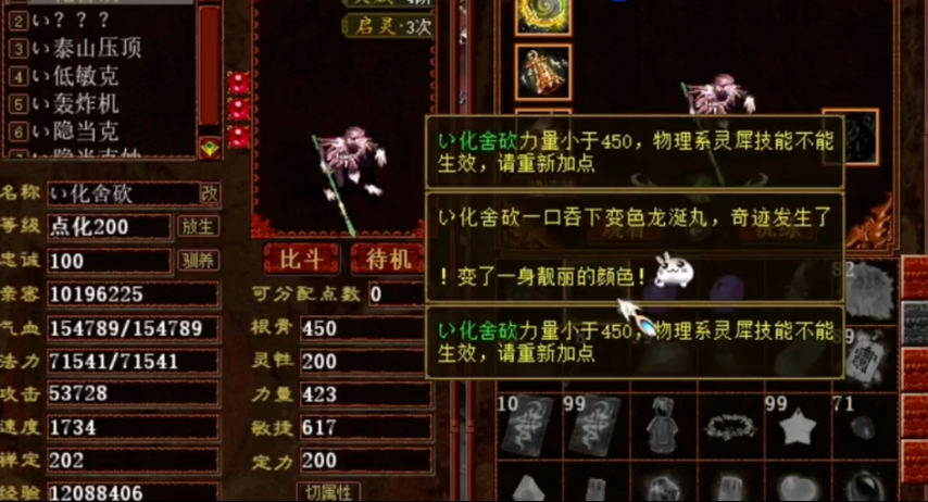 这位兄弟拥有一只不错的大话西游2猴毛,而且他非常想将这家伙变成金色的,于是今日准备好了一批变色龙涎丸,看看能不能成功获得一只“金丝猴”! 尴尬,最后还是没变成金色,希望下次能一发入魂吧! [编辑:89ejdj]