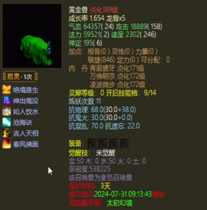 大话西游2自带绝版人形神兽!七十万成交六阶女龙秀
