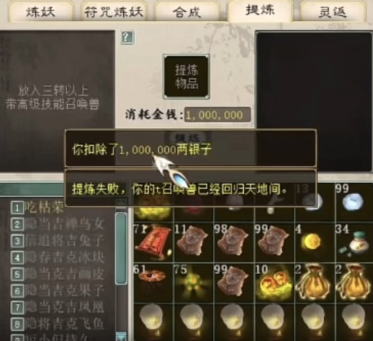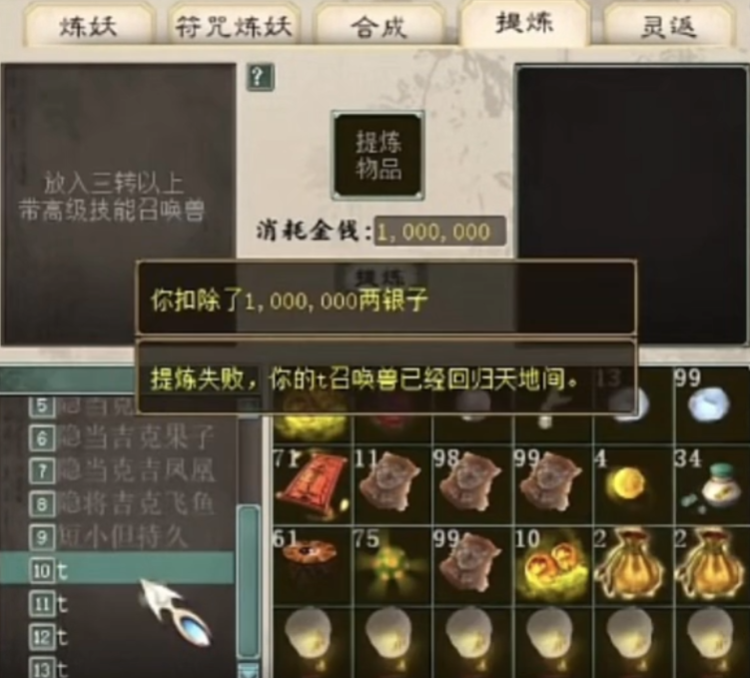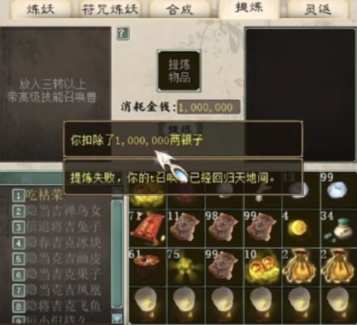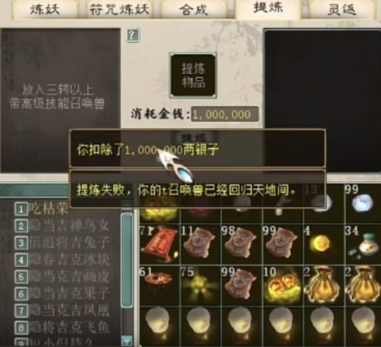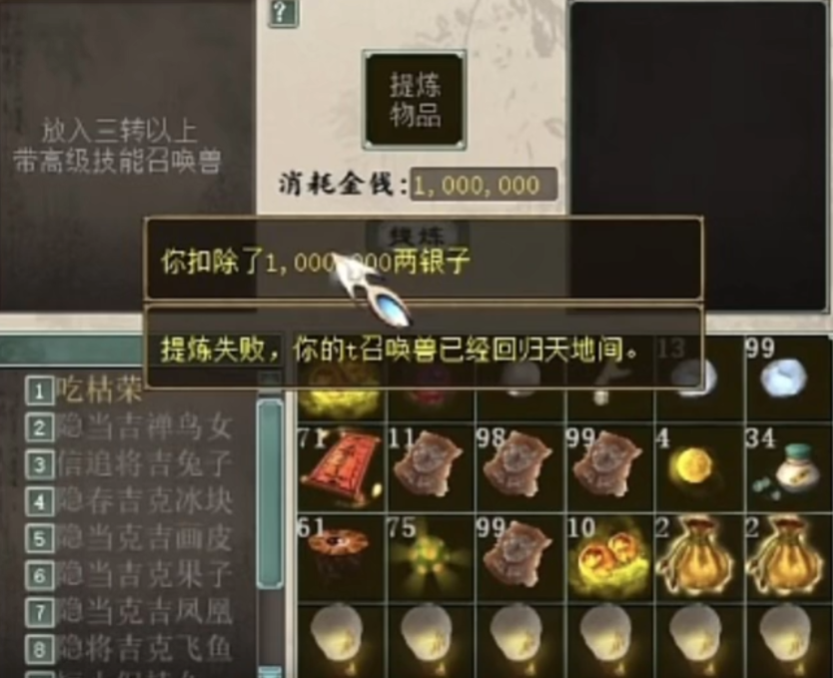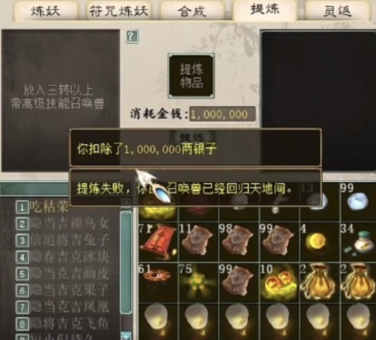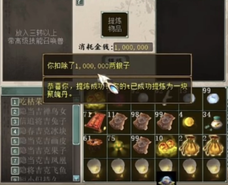 大话西游2一次提炼九只隐身宝宝!投入成本大几千块
