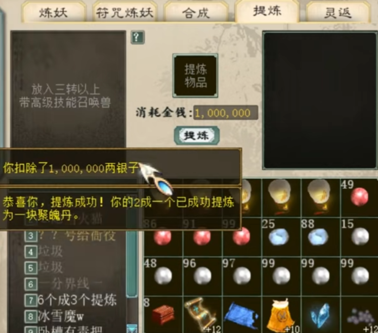 提炼七只大话西游2召唤兽,这位老铁在开始之前,说希望能有一半的成功率就满足了,那咱们就来看看他能否如愿吧!