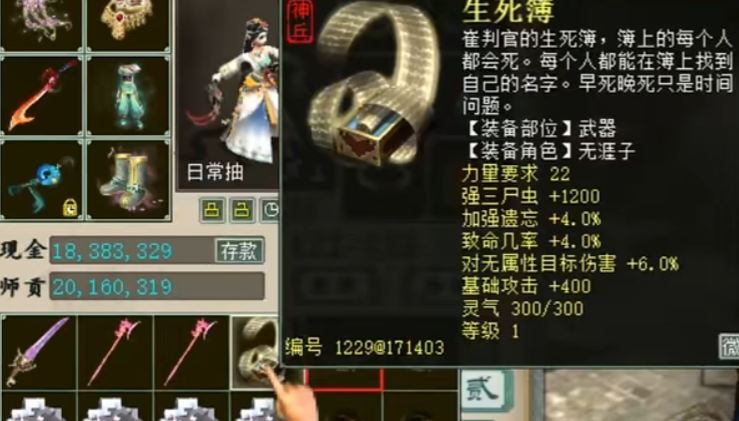 一老铁准备砸五件大话西游2神兵,其中有一把致命破、一把三级抽、一把双忽视和两把单回,而最后真的有上四上五,但他为何高兴不起来? |