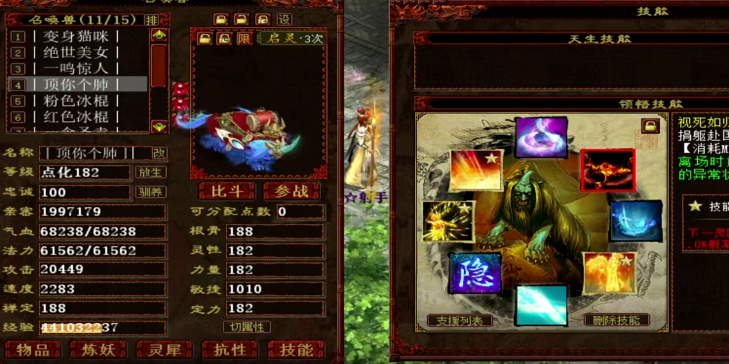 一老铁刚入手一枚大话西游2男仙,装备目前还没有搭配成型,就先不展示了,主要来秀一下身上的宝宝,咱们来感受下这个号是什么水平! |