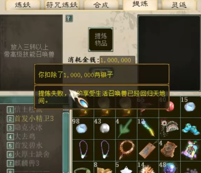 再度挑战大话西游2提炼几率!今天这位五开兄弟,准备了足足十只召唤兽用作提炼,咱们来看看成功率如何?