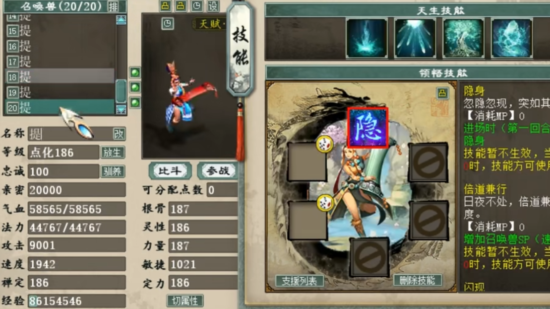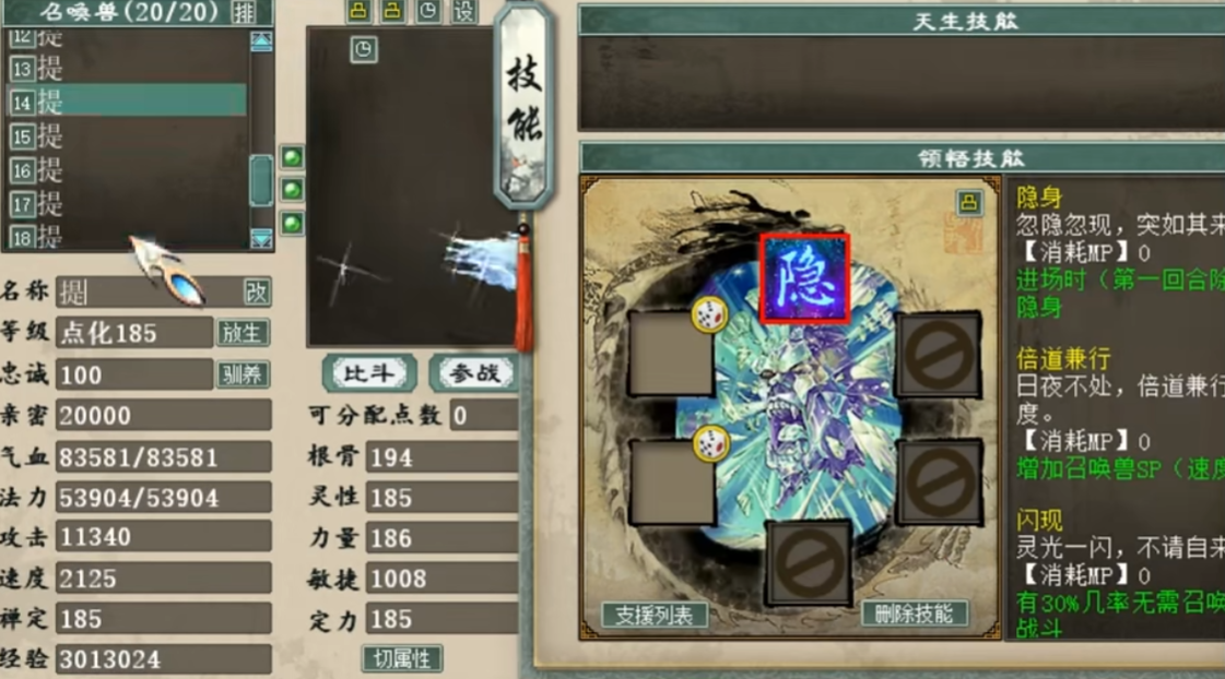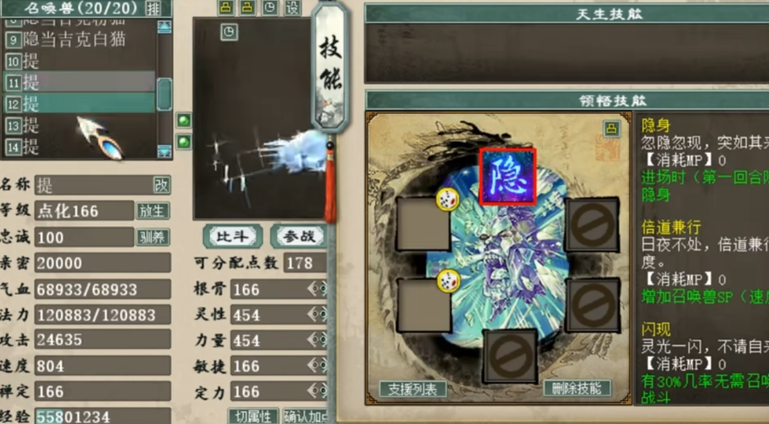 玩家准备提炼十只大话西游2召唤兽,其中有天龙女、冰块、松鼠、吉祥果等等,但它们都拥有一个同样的技能效果,那就是“隐身”,话不多说,一起来看看最后能成功几只? |