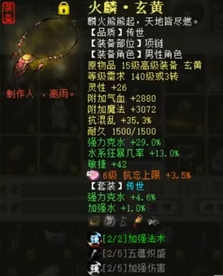 今天给大家展示一位六阶克水仙,他仅仅是武器选择了六阶仙器,其余皆是高级装备,而这也是非常有性价比的搭配方法,目前他的克水数据做到了382.9,水系狂暴也有68.5,下面就一起来欣赏吧! |