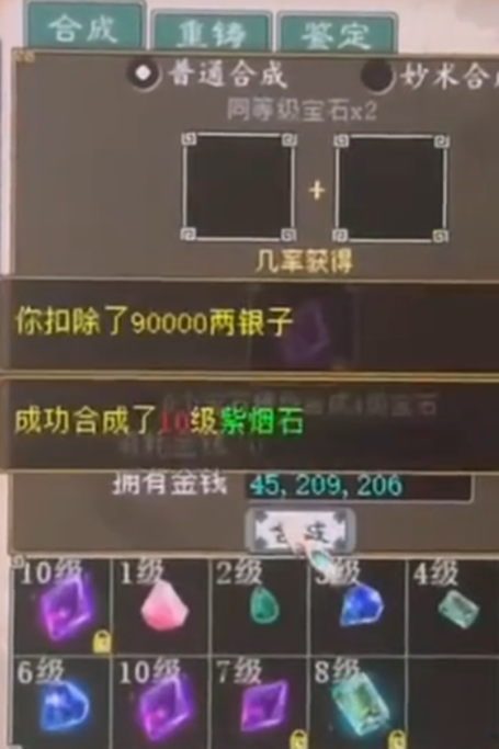 10级大话西游2宝石合成,到底要碎多少次才能成功?今天就为大家展示一波这样的操作,看看这算不算正常的几率? 终于,终于合出一颗价值103的10级宝石,各位老铁觉得这波是亏是赚呢? [编辑:092djr]
