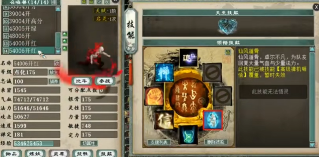 心猿这宝宝只要领悟终极,身价就能成倍上涨,因此有很多玩家会买入多只心猿,专门用来点技能博几率! 今天这位玩家就展示出自己身上的十只大话西游2心猿,不知何日能毕业成圣,赚个盆满钵满? |