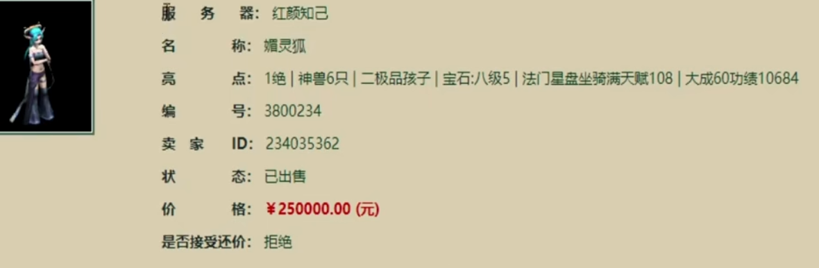 回归玩家花二十五万大洋,入手了一个大话西游2女魔号,号上共有六只神兽和两个极品孩子,再加上一套不错的装备,咱们一起来看看他买得值不值? |