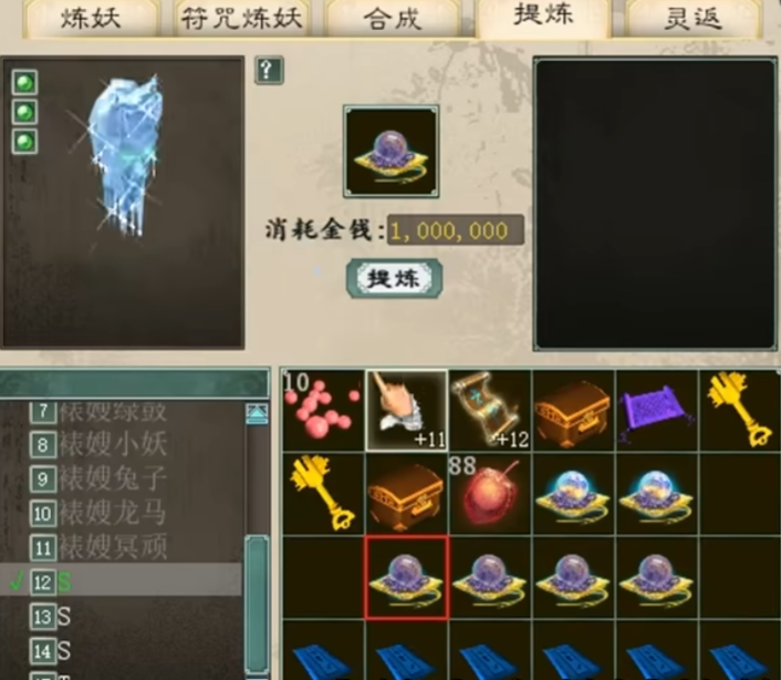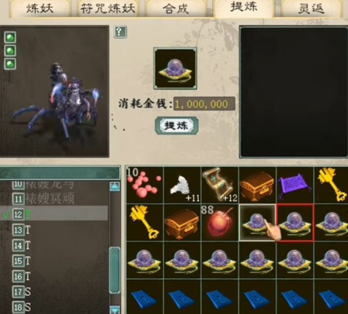 一口气提炼九只大话西游2召唤兽,其中还有三只带隐身的宝宝,这波投入不可谓不大,咱们一起来看最后的结果吧! |