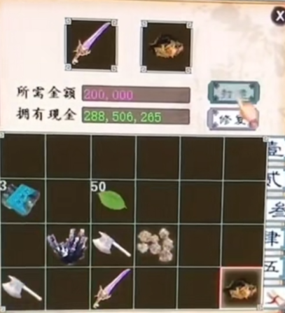 老铁在任务中获得了一把大话西游2单回神兵,小伙伴们都喊着让他开砸,而他身上也正好有些升级材料,于是下一刻就直奔铁匠铺,咱们来看看结果如何! |