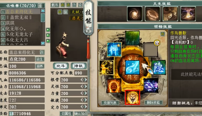 盖总准备重修终极神兽大话西游2三十娘,目标化无,一起来看下几手能出? 四手修出化无终极技能,恭喜盖总又多一只化无宝宝! [编辑:298jiw]