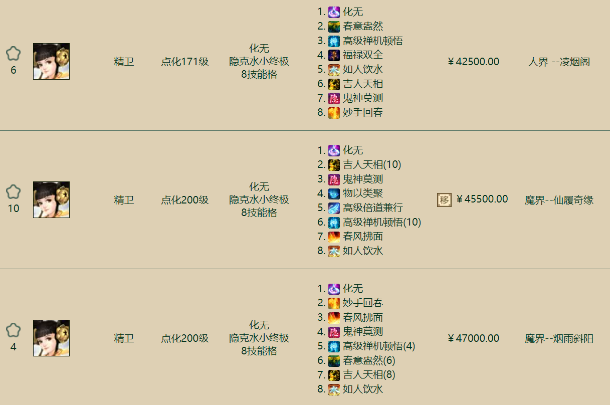 有玩家花3800元,在藏宝阁提了一只大话西游2问号精卫,紧接着就来到洛阳青楼门口修终极,而短短几分钟后,这只宝宝的身价就暴涨十倍! 一手修出化无,直接土鸡变凤凰,莫非这青楼门口真的容易出化无? [编辑:019duue]