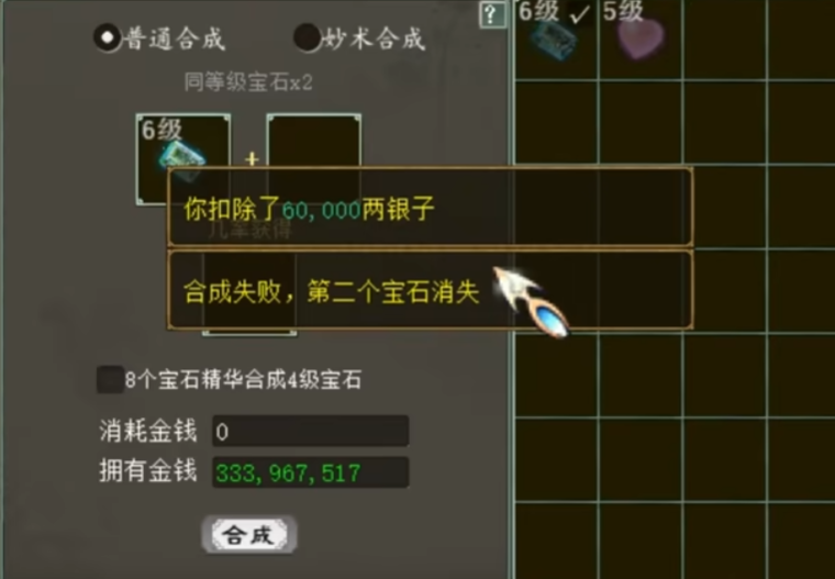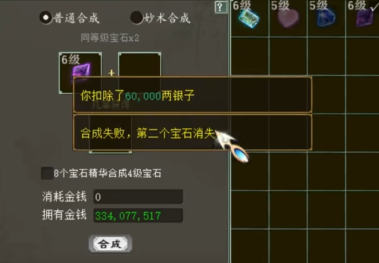 悲剧啊悲剧,连颗七级宝石都没合出来,希望老铁下次能心想事成!