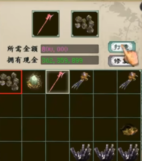 一老铁准备了六把大话西游2神兵武器,其中有两枚爪子、外加一刀、一锤、一斧、一戟,并且连补天和六魂都买好了,接下来就直奔铁匠铺和大雷一较高低,咱们来看看他能否挑战成功! 如果不是改了规则,继续砸会有时间限制的话,估计六把神兵就全没了...... [编辑:298djw]